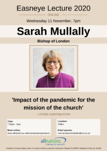 All Nations Christian College, UK is hosting the 2020 Easneye Lecture virtually on Wednesday, 11 November at 7pm GMT. The Rt Revd Sarah Mullally, Bishop of London, will be the key presenter, with additional speakers representing the global voice of mission. This event will be specifically addressing the impact of the coronavirus pandemic on the…